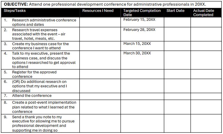 Each year, I recommend reviewing your overall career plan and identifying 3-5 primary goals to focus on. Then, break each goal down into actionable steps. Whether you prefer pen and paper or digital tracking tools, the key is to document your progress consistently.