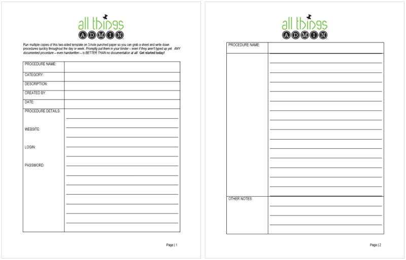 If you prefer to capture your procedures digitally, download the above template here as a shortcut on your computer desktop (or include it in OneNote as a template) to quickly document a procedure as you complete it. Then immediately save it to your procedures documentation folder so you can easily find it again later.